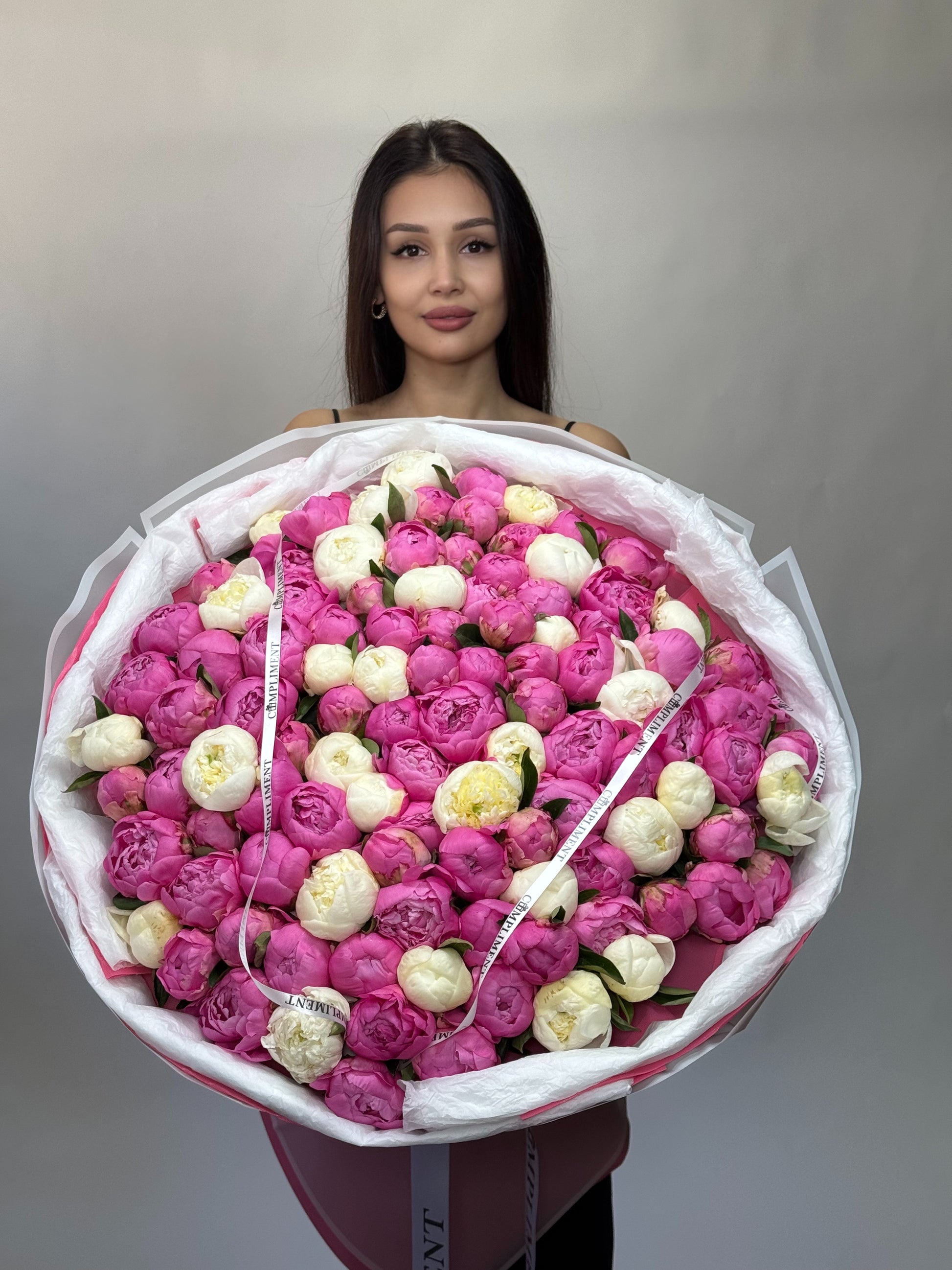 100 stems of hot pink and white peonies