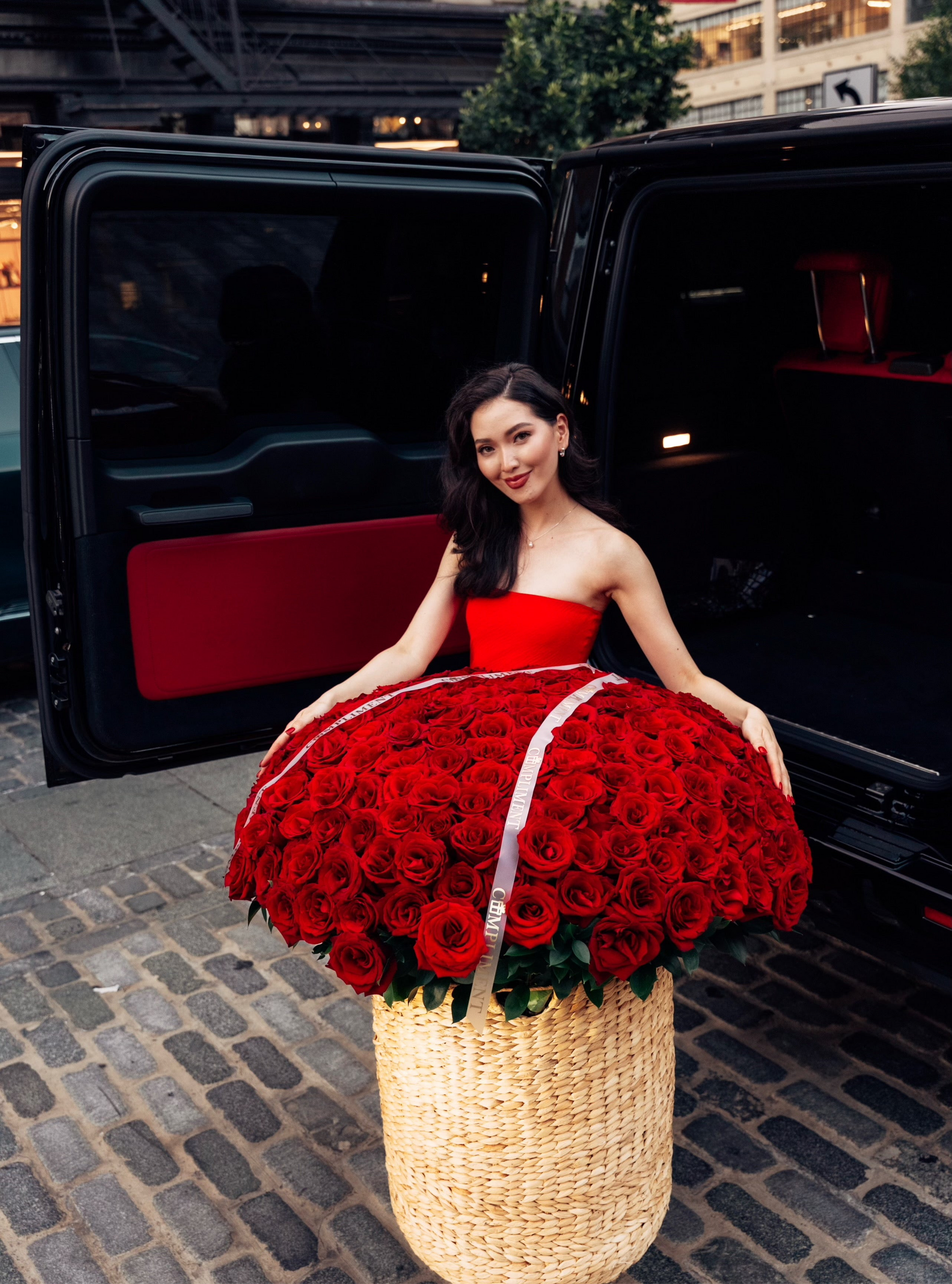 red roses in a basket size xxl